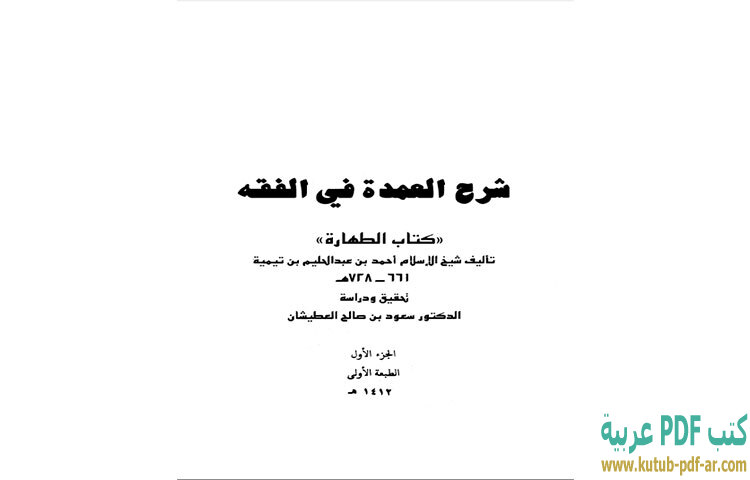 تحميل كتاب شرح العمدة في الفقه كتاب الطهارة PDF – ابن تيمية – هذا الكتاب من تأليف ابن تيمية و حقوق الكتاب محفوظة لصاحبها .. نترككم مع تحميل كتاب شرح العمدة في الفقه كتاب الطهارة PDF.