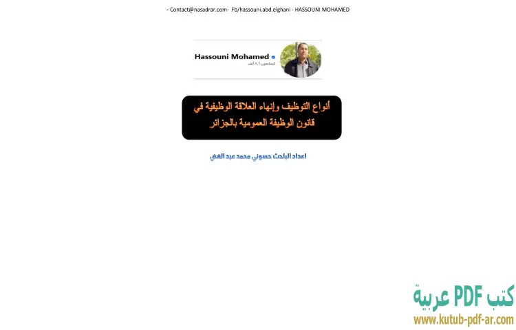 تحميل كتاب أنواع التوظيف وإنهاء العلاقة الوظيفية في قانون الوظيفة العمومية بالجزائر PDF – حسوني محمد عبدالغني