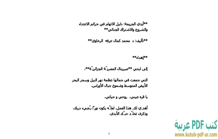 تحميل كتاب أيدي الجريمة PDF – محمد كمال الرخاوي – يقدم كتاب "أيدي الجريمة: دليل الاتهام في جرائم الاعتداء والشروع والاشتراك الجنائي" للكاتب دكتور محمد كمال الرخاوي دراسة شاملة حول جوانب مختلفة من الجرائم التي تتعلق بالاعتداء والشروع والاشتراك الجنائي. يتناول الكتاب بشكل دقيق التعريفات القانونية والجرائم المرتبطة بها، حيث يسعى الكاتب إلى توضيح المفاهيم الأساسية التي تحكم هذه الأنواع من الجرائم، مما يسهل فهم القارئ لها.