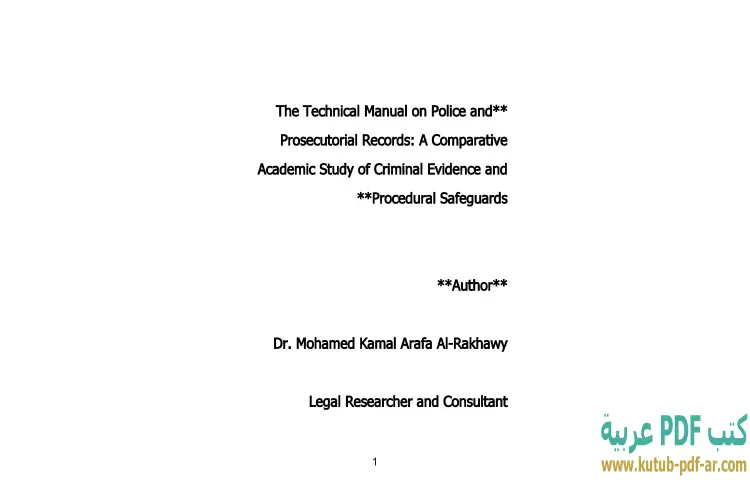تحميل كتاب الترجمة الإنجليزية للدليل الفني للقضاة والمحامين في محاضر الشرطة والنيابة PDF – محمد كمال الرخاوي – يقدم الكتاب "الدليل الفني للقضاة والمحامين في محاضر الشرطة والنيابة" للكاتب الدكتور محمد كمال الرخاوي دراسة أكاديمية مقارنة تركز على الأدلة الجنائية والضمانات الإجرائية في النظامين القانونيين. يستعرض المؤلف من خلال هذا العمل الشامل كيفية التعامل مع المحاضر الشرطية والإجراءات القانونية ذات الصلة، مما يمنح القارئ فهماً عميقاً للمعايير التي تحكم هذه العمليات.