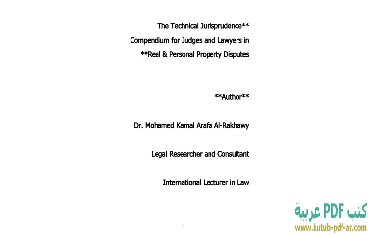 تحميل كتاب الترجمة الإنجليزية لموسوعة النقاط الفنية للقضاة والمحامين في العقار والمنقول PDF – محمد كمال الرخاوي – يتناول كتاب "الموسوعة الفنية للقضاة والمحامين في العقار والمنقول" تأليف الدكتور محمد كمال الرخاوي موضوعات قانونية هامة تتعلق بالنزاعات المتعلقة بالعقارات والممتلكات الشخصية. يهدف الكتاب إلى تقديم دليل شامل ومفيد للقضاة والمحامين، حيث يتناول القضايا القانونية المرتبطة بالعقارات وكيفية التعامل معها من منظور قانوني دقيق. يبرز في هذا السياق أهمية الفهم العميق للأحكام القانونية التي تحكم هذه النزاعات، مما يسهم في تعزيز قدرة المحامين والقضاة على اتخاذ القرارات الصائبة.