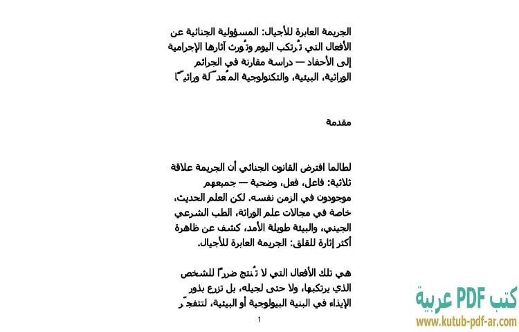 تحميل كتاب الجريمة العابرة للأجيال PDF – محمد كمال الرخاوي – "الجريمة العابرة للأجيال" هو عمل أكاديمي يتناول موضوعًا معقدًا يتمثل في المسؤولية الجنائية عن الأفعال الإجرامية التي تُرتكب اليوم وكيف تؤثر هذه الأفعال على الأجيال القادمة. يستعرض الكاتب دكتور محمد كمال الرخاوي من خلال دراسته المقارنة الأبعاد المختلفة للجريمة، متناولًا الجرائم الوراثية والبيئية، بالإضافة إلى الجرائم الناتجة عن التكنولوجيات المُعدَّلة وراثيًا. يهدف الكتاب إلى تقديم رؤية شاملة حول كيفية انتقال الآثار الإجرامية عبر الأجيال وتأثير ذلك على المجتمع.