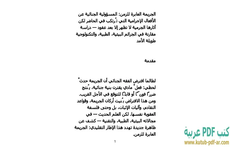 تحميل كتاب الجريمة العابرة للزمن PDF – محمد كمال الرخاوي – الجريمة العابرة للزمن هو عمل أكاديمي متميز للدكتور محمد كمال الرخاوي، يتناول فيه موضوعًا معقدًا يتصل بالمسؤولية الجنائية عن الأفعال الإجرامية التي تُرتكب في الحاضر، لكن آثارها السلبية لا تظهر إلا بعد عقود. يسعى الكتاب إلى استكشاف كيفية تأثير الجرائم البيئية والطبية والتكنولوجية طويلة الأمد على الأفراد والمجتمعات، مما يفتح آفاقًا جديدة لفهم العلاقة بين الزمن والجريمة.