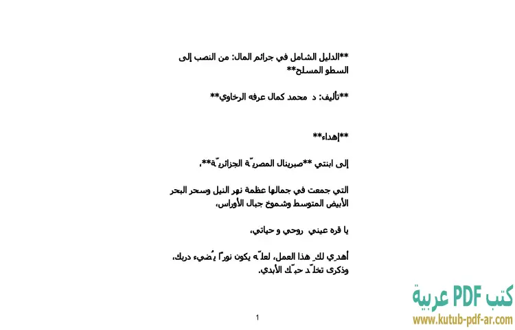 في النهاية، يعد الكتاب مرجعًا شاملًا ومفيدًا لأي شخص يسعى لفهم جرائم المال بعمق، حيث يقدم نظرة شاملة ومفصلة عن هذا الموضوع المهم.