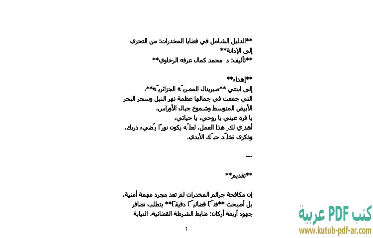 تحميل كتاب الدليل الشامل في قضايا المخدرات PDF – محمد كمال الرخاوي – يقدم كتاب "الدليل الشامل في قضايا المخدرات" للدكتور محمد كمال الرخاوي رؤية متكاملة حول مختلف جوانب قضايا المخدرات، بدءًا من مراحل التحري وجمع الأدلة وصولًا إلى مراحل الإدانة. يعتمد الكتاب على دراسات ميدانية وتجارب عملية، مما يجعله مرجعًا مهمًا لكل من يعمل في المجالات القانونية والأمنية. يتناول المؤلف بالتفصيل الأساليب المستخدمة في التحقيقات، مما يعكس فهمًا عميقًا للتعقيدات المرتبطة بهذه القضايا.