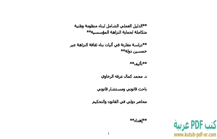 تحميل كتاب الدليل العملي الشامل لبناء منظومة وطنية متكاملة لحماية النزاهة المؤسسية PDF – محمد كمال الرخاوي