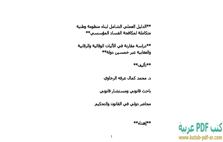 تحميل كتاب الدليل العملي الشامل لبناء منظومة وطنية متكاملة لمكافحة الفساد المؤسسي PDF – محمد كمال الرخاوي