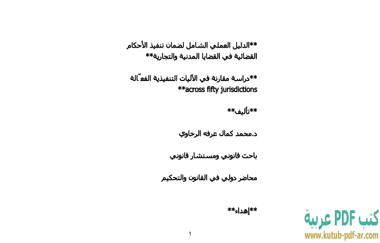 تحميل كتاب الدليل العملي الشامل لضمان تنفيذ الأحكام القضائية في القضايا المدنية والتجارية PDF – محمد كمال الرخاوي – يقدم كتاب "الدليل العملي الشامل لضمان تنفيذ الأحكام القضائية في القضايا المدنية والتجارية" لدكتور محمد كمال الرخاوي دراسة معمقة حول الآليات التنفيذية التي تضمن تحقيق العدالة في القضايا المدنية والتجارية. يركز الكتاب على أهمية التنفيذ الفعّال للأحكام القضائية كجزء أساسي من نظام العدالة، حيث يُعتبر التنفيذ الفعلي للأحكام هو الضمانة الأساسية لتطبيق القانون وتحقيق حقوق الأفراد.