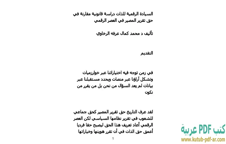 تحميل كتاب السيادة الرقمية للذات PDF – محمد كمال الرخاوي – "السيادة الرقمية للذات: دراسة قانونية مقارنة في حق تقرير المصير في العصر الرقمي" هو عمل أكاديمي من تأليف الدكتور محمد كمال الرخاوي، يسلط الضوء على مفهوم السيادة الرقمية وتأثيرها على حقوق الأفراد في زمن التكنولوجيا الحديثة. يناقش الكتاب كيفية تأثير التحولات الرقمية على حقوق الإنسان، وخاصة حق تقرير المصير، في سياق العولمة والتقدم التكنولوجي السريع. يعرض الرخاوي مجموعة من القضايا القانونية والأخلاقية التي تتعلق بالسيطرة على البيانات الشخصية وحرية التعبير في الفضاء الرقمي.