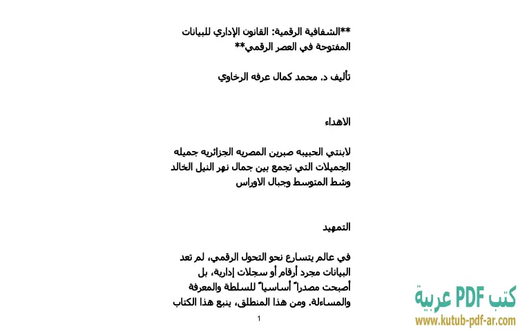 تحميل كتاب الشفافية الرقمية PDF – محمد كمال الرخاوي – تتناول الكتاب "الشفافية الرقمية: القانون الإداري للبيانات المفتوحة في العصر الرقمي" للدكتور محمد كمال الرخاوي موضوعًا حيويًا في عصرنا الحالي، حيث تتزايد أهمية البيانات المفتوحة والشفافية في الإدارة العامة. يستعرض المؤلف الممارسات القانونية والإدارية المتعلقة بهذا الموضوع، مما يسهل فهم كيفية تأثير البيانات المفتوحة على صنع القرار والإدارة الحكومية. يتميز الكتاب بتحليله العميق للأبعاد القانونية والإدارية للشفافية الرقمية، مما يعكس تحديات العصر الرقمي ومتطلبات التكيف معها.