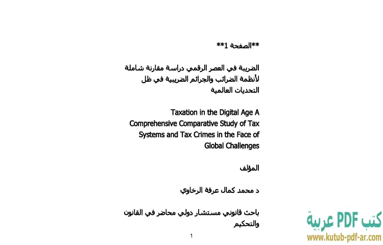 تحميل كتاب الضريبة في العصر الرقمي PDF – محمد كمال الرخاوي – يتناول كتاب "الضريبة في العصر الرقمي" للدكتور محمد كمال الرخاوي دراسة شاملة لأنظمة الضرائب المختلفة وكيفية تأثير التحولات الرقمية على هذه الأنظمة. يتعرض المؤلف لتفاصيل الجرائم الضريبية التي تتزايد في ظل التقدم التكنولوجي والتحديات العالمية، مما يبرز أهمية فهم هذه الظواهر في سياق الاقتصاد الرقمي. يقدم الكتاب تحليلاً مقارنًا بين الأنظمة الضريبية المختلفة، مما يساعد القارئ على استيعاب الفوارق والتشابهات بينها.