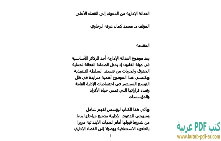 تحميل كتاب العدالة الإدارية من الدعوى إلى القضاء الأعلى PDF – محمد كمال الرخاوي – يستعرض كتاب "العدالة الإدارية من الدعوى إلى القضاء الأعلى" للدكتور محمد كمال الرخاوي مفهوم العدالة الإدارية وأهميتها في النظام القانوني. يتناول الكتاب تطور مفهوم العدالة الإدارية وتأثيره على الأنظمة القانونية المختلفة، موضحاً كيفية انتقال القضايا الإدارية من المحاكم الدنيا إلى القضاء الأعلى وأهمية هذا الانتقال في حماية الحقوق وتحقيق العدالة.