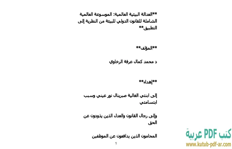 تحميل كتاب العدالة البيئية العالمية PDF – محمد كمال الرخاوي – في كتاب "العدالة البيئية العالمية: الموسوعة العالمية الشاملة للقانون الدولي للبيئة من النظرية إلى التطبيق"، يقدم دكتور محمد كمال الرخاوي رؤية شاملة وعميقة لقضايا العدالة البيئية من منظور قانوني دولي. يتناول الكتاب المفاهيم الأساسية للعدالة البيئية، ويستعرض الأطر القانونية التي يرتكز عليها القانون الدولي للبيئة، مما يجعله مرجعًا مهمًا للباحثين والمهتمين في هذا المجال.