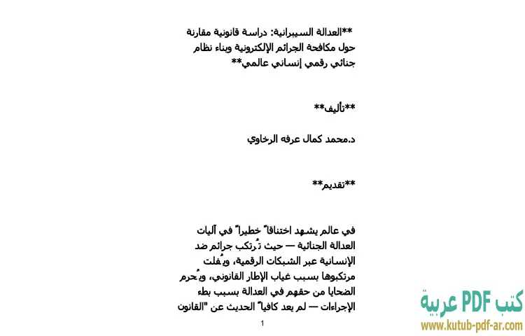 تحميل كتاب العدالة السيبرانية PDF – محمد كمال الرخاوي – يتناول كتاب "العدالة السيبرانية: دراسة قانونية مقارنة حول مكافحة الجرائم الإلكترونية وبناء نظام جنائي رقمي إنساني عالمي" للدكتور محمد كمال الرخاوي موضوعًا حيويًا ومتجددًا في عصر التكنولوجيا الرقمية. يتعمق الكتاب في تحليل الجرائم الإلكترونية من منظور قانوني، موضحًا التحديات التي تواجه الأنظمة القانونية التقليدية في التصدي لهذه الظاهرة المتزايدة. يقدم الباحث رؤى قانونية متكاملة تساعد في فهم كيفية تأثير البيئة الرقمية على القوانين الجنائية، مستعرضًا تجارب الدول المختلفة في التعامل مع هذه الجرائم.