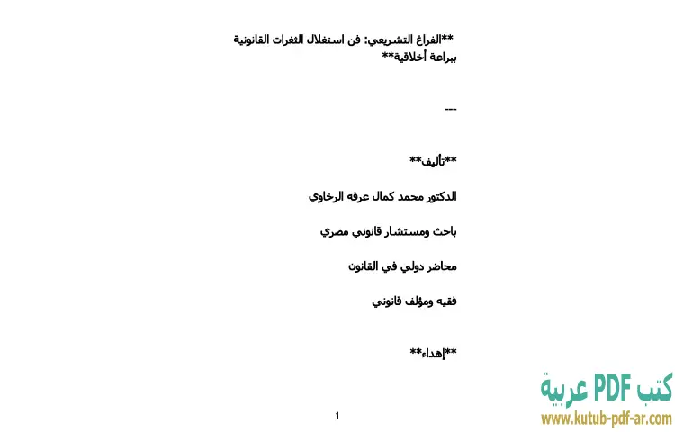 تحميل كتاب الفراغ التشريعي PDF – محمد كمال الرخاوي – يستعرض كتاب "الفراغ التشريعي – فن استغلال الثغرات القانونية ببراعة أخلاقية" للدكتور محمد كمال الرخاوي موضوعًا مثيرًا للجدل في عالم القانون والتشريع. يسلط المؤلف الضوء على كيفية استغلال الثغرات القانونية بشكل أخلاقي، مما يثير تساؤلات حول الحدود بين الشرعية والأخلاقية في مجال القانون. يتناول الكتاب أمثلة واقعية ويحلل كيفية تأثير هذه الثغرات على النظام القانوني بشكل عام، مما يفتح المجال لتفكير عميق حول دور القانون في المجتمع.