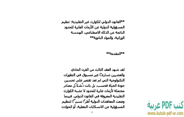 تحميل كتاب القانون الدولي للكوارث غير التقليدية PDF – محمد كمال الرخاوي – يستعرض كتاب "القانون الدولي للكوارث غير التقليدية" للدكتور محمد كمال الرخاوي قضايا مهمة حول تنظيم المسؤولية الدولية في مواجهة الأزمات العابرة للحدود الناتجة عن التقدم التكنولوجي. يتناول الكتاب بشكل خاص تأثيرات الذكاء الاصطناعي والهندسة الوراثية والمواد النانوية، مما يجعله مرجعًا ضروريًا لفهم كيفية تعامل القوانين الدولية مع المخاطر المحتملة التي تنتج عن هذه التقنيات الحديثة.