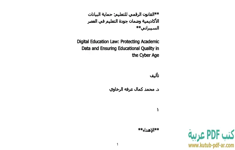 تحميل كتاب القانون الرقمي للتعليم PDF – محمد كمال الرخاوي – يستعرض كتاب "القانون الرقمي للتعليم" للدكتور محمد كمال الرخاوي أهمية حماية البيانات الأكاديمية وضمان جودة التعليم في العصر السيبراني. يتناول المؤلف التحديات التي تواجه المؤسسات التعليمية في ظل التحولات الرقمية السريعة، حيث تبرز حاجة ملحة لوضع إطار قانوني يحمي المعلومات الشخصية للطلاب والموظفين ويعزز من جودة التعليم. يتطرق الكتاب إلى الجوانب القانونية المختلفة المتعلقة بالتعليم الرقمي، مع التركيز على كيفية تطبيق القوانين بشكل فعال في بيئات التعلم الحديثة.