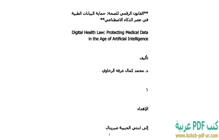 تحميل كتاب القانون الرقمي للصحة PDF – محمد كمال الرخاوي – يقدم كتاب "القانون الرقمي للصحة – حماية البيانات الطبية في عصر الذكاء الاصطناعي" للدكتور محمد كمال الرخاوي تحليلًا عميقًا حول التحديات القانونية المرتبطة بالبيانات الصحية في ظل التطورات التكنولوجية الحديثة. يستعرض الكتاب كيفية تأثير الذكاء الاصطناعي على مجالات الصحة والعناية الطبية، مع التركيز على القضايا القانونية التي تطرأ نتيجة لذلك. يتناول الرخاوي مجموعة من المسائل الأساسية مثل الخصوصية وأمن المعلومات وكيفية حماية البيانات الشخصية في هذا السياق.