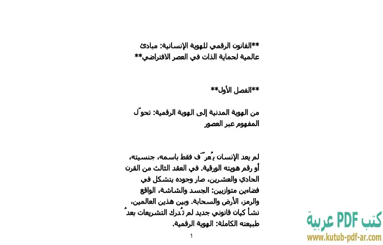تحميل كتاب القانون الرقمي للهوية الإنسانية PDF – محمد كمال الرخاوي – يتناول كتاب "القانون الرقمي للهوية الإنسانية" للدكتور محمد كمال الرخاوي مجموعة من المبادئ العالمية التي تهدف إلى حماية الهوية الإنسانية في العصر الافتراضي. يستعرض الكتاب التحديات التي تواجه الأفراد في عالم متزايد التداخل بين الحياة الرقمية والهوية الشخصية، حيث تُعتبر الهوية الرقمية جزءًا لا يتجزأ من وجود الإنسان في المجتمع الحديث.