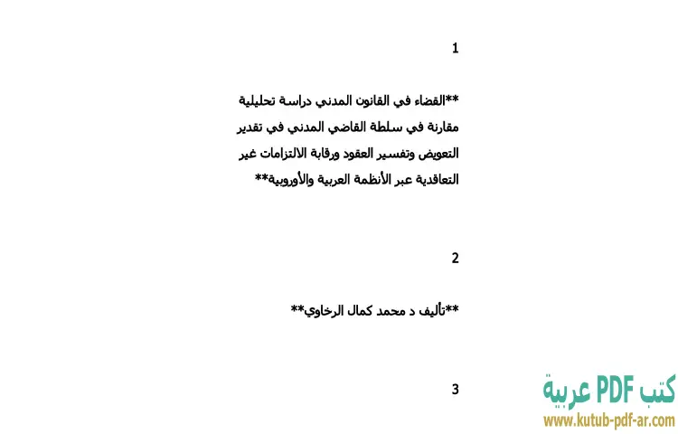 تحميل كتاب القضاء في القانون المدني PDF – محمد كمال الرخاوي – يتناول كتاب "القضاء في القانون المدني" للدكتور محمد كمال الرخاوي موضوعًا حيويًا في مجال القانون، حيث يقدم دراسة تحليلية مقارنة تركز على سلطة القاضي المدني في تقدير التعويض وتفسير العقود. يعرض الكاتب من خلال هذا العمل كيف تتباين الأنظمة القانونية العربية والأوروبية في معالجة هذه القضايا، مما يتيح للقارئ فهمًا عميقًا لتأثيرات هذه الاختلافات على تطبيق القانون في السياقات المختلفة.