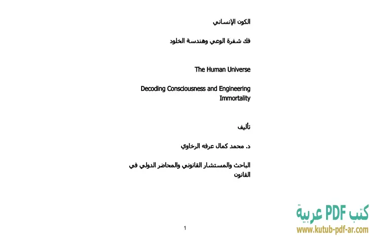 تحميل كتاب الكون الإنساني PDF – محمد كمال الرخاوي – في كتاب "الكون الإنساني: فك شفرة الوعي وهندسة الخلود" للدكتور محمد كمال الرخاوي، يتم تناول موضوعات عميقة تتعلق بالوعي والوجود الإنساني من منظور علمي وفلسفي. يسعى الكاتب إلى تحليل طبيعة الوعي وإمكانيات تطويره، حيث يقدم رؤى مبتكرة حول كيفية فهم الذات وعلاقتها بالكون من حولها.