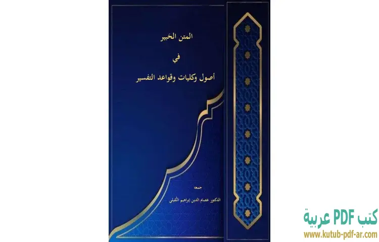 تحميل كتاب المتن الحَبير في أصول وكليات وقواعد التفسير PDF – عصام الدين إبراهيم النقيلي – يعد كتاب "المتن الحبير في أصول وكليات وقواعد التفسير" للكاتب أبو فاطمة عصام الدين بن إبراهيم النقيلي من المراجع الفريدة في مجال التفسير، حيث يجمع بين أصول التفسير وكلياته وقواعده في متن متكامل. يتميز الكتاب بأنه يقدم علم أصول التفسير بشكل منظم ويجمع ما كان متفرقًا في كتب أخرى، مما يجعله ينفرد بمكانته كأحد المصادر الأساسية في هذا المجال.