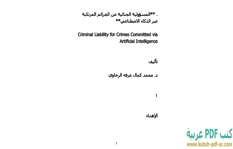 تحميل كتاب المسؤولية الجنائية عن الجرائم المرتكبة عبر الذكاء الاصطناعي PDF – محمد كمال الرخاوي