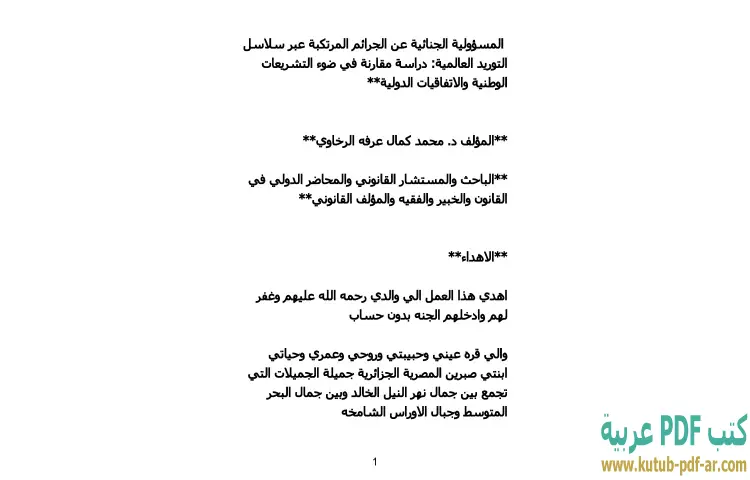 تحميل كتاب المسؤولية الجنائية عن الجرائم المرتكبة عبر سلاسل التوريد العالمية PDF – محمد كمال الرخاوي