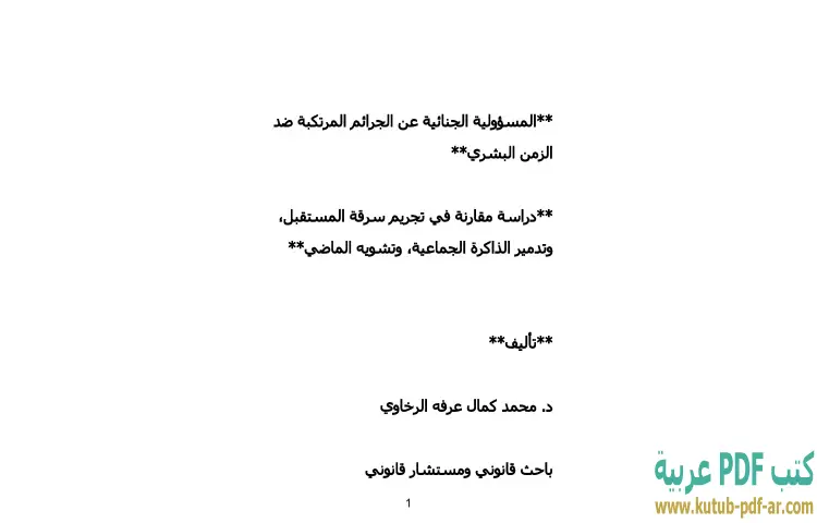 تحميل كتاب المسؤولية الجنائية عن الجرائم المرتكبة ضد الزمن البشري PDF – محمد كمال الرخاوي