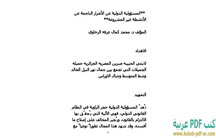 تحميل كتاب المسؤولية الدولية عن الأضرار الناجمة عن الأنشطة غير المشروعة PDF – محمد كمال الرخاوي