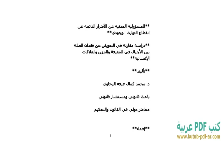 تحميل كتاب المسؤولية المدنية عن الأضرار الناتجة عن انقطاع التوارث الوجودي PDF – محمد كمال الرخاوي