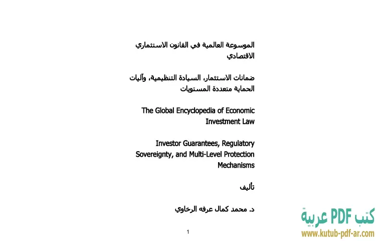 تحميل كتاب الموسوعة العالمية في القانون الاستثماري الاقتصادي PDF – محمد كمال الرخاوي – تقدم "الموسوعة العالمية في القانون الاستثماري الاقتصادي" رؤية شاملة لمفاهيم استثمارية معقدة تتعلق بالضمانات الاستثمارية والسيادة التنظيمية وآليات الحماية المتعددة. يتناول الكتاب الذي ألفه الدكتور محمد كمال الرخاوي مجموعة من المواضيع الحيوية التي تهم المستثمرين وصناع القرار، حيث يسلط الضوء على الأطر القانونية التي تحكم الأنشطة الاستثمارية وكيفية التعامل مع التحديات التي قد تواجهها.