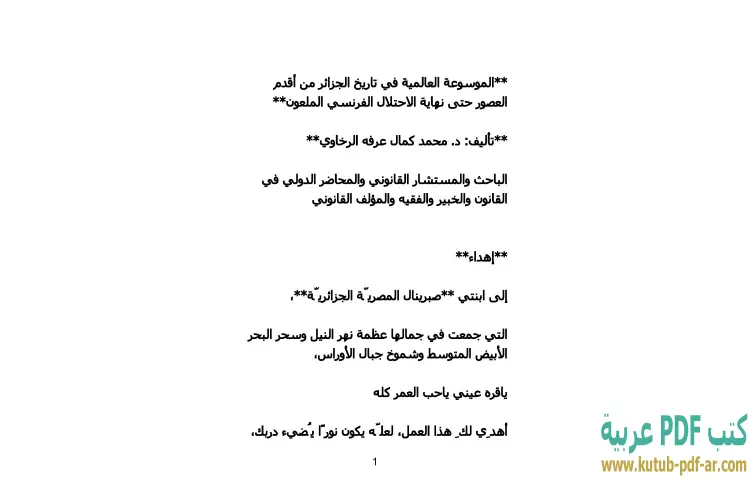 تحميل كتاب الموسوعة العالمية في تاريخ الجزائر من أقدم العصور حتى نهاية الاحتلال الفرنسي الملعون PDF – محمد كمال الرخاوي