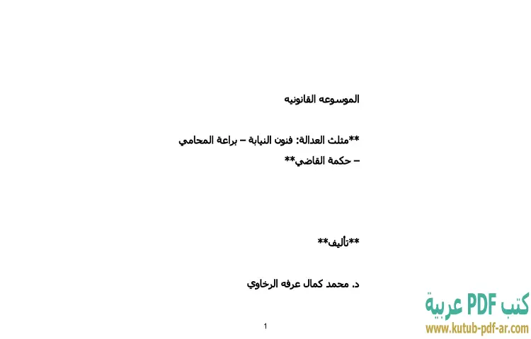 تحميل كتاب الموسوعة القانونية PDF – محمد كمال الرخاوي – يتناول كتاب "الموسوعة القانونية – مثلث العدالة" للدكتور محمد كمال الرخاوي موضوعات حيوية في عالم القانون، حيث يستعرض الفنون المختلفة للنيابة، وبراعة المحامي، وحكمة القاضي. يهدف الكتاب إلى تقديم دراسة شاملة تعكس الأبعاد المختلفة لعمل كل من هذه الكيانات الأساسية في النظام القانوني، مما يسهم في تعزيز فهم القارئ لدور كل منها في تحقيق العدالة.
