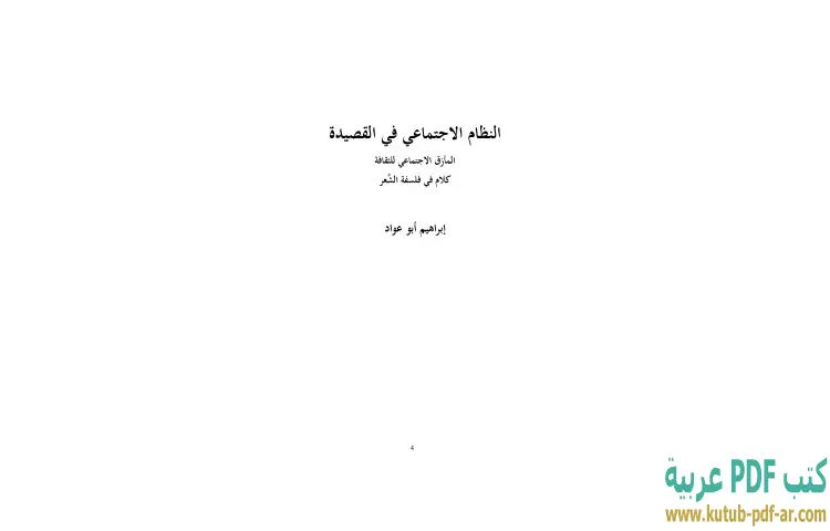 تحميل كتاب النظام الاجتماعي في القصيدة: المأزق الإجتماعي للثقافة PDF – إبراهيم أبو عواد – هذا الكتاب يقدم قراءة عميقة للبُنى الاجتماعية والثقافية من خلال تحليل القصيدة وأبعادها المختلفة. يسعى المؤلف إلى استكشاف الأنساق اللغوية التي تعتمد على التجريد والتعرية، مما يفتح المجال لفهم أعمق لمعاني النصوص ودلالاتها. من خلال هذا التحليل، يأخذ القارئ في رحلة فكرية نحو ما وراء النص، حيث تتجلى الأبعاد المعرفية التي تتجاوز الكلمات وتفاصيل السرد.
