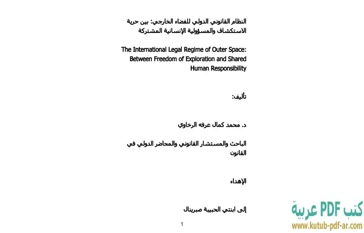 تحميل كتاب النظام القانوني الدولي للفضاء الخارجي PDF – محمد كمال الرخاوي – يستعرض كتاب "النظام القانوني الدولي للفضاء الخارجي: بين حرية الاستكشاف والمسؤولية الإنسانية المشتركة" للدكتور محمد كمال الرخاوي مجموعة من القضايا الحاسمة المتعلقة بالقانون الدولي في سياق الفضاء الخارجي. يتناول الكتاب بالأخص التوازن بين حرية الدول في استكشاف الفضاء والمسؤوليات التي تترتب على هذا الاستكشاف، مما يعكس أهمية التفاعل بين الطموحات العلمية والتحديات القانونية.