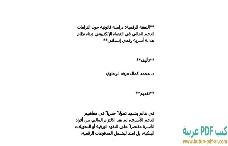 تحميل كتاب النفقة الرقمية PDF – محمد كمال الرخاوي – يستعرض كتاب "النفقة الرقمية: دراسة قانونية حول التزامات الدعم المالي في الفضاء الإلكتروني" للدكتور محمد كمال الرخاوي موضوعًا حيويًا يتمثل في كيفية تكييف القوانين الحالية لتتناسب مع التحديات الجديدة التي يطرحها الفضاء الإلكتروني. يتناول الكتاب مفهوم النفقة الرقمية، مُشيرًا إلى كيف أن التزامات الدعم المالي قد تأثرت بالتكنولوجيا الحديثة، مما يستدعي إعادة النظر في الأطر القانونية التقليدية.