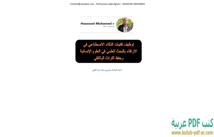 تحميل كتاب توظيف تقنيات الذكاء الاصطناعي في الارتقاء بالبحث العلمي في العلوم الإنسانية وحفظ التراث الوثائقي PDF – حسوني محمد عبدالغني – يتناول كتاب "توظيف تقنيات الذكاء الاصطناعي في الارتقاء بالبحث العلمي في العلوم الإنسانية وحفظ التراث الوثائقي" للكاتب حسوني محمد عبد الغني، التحولات العميقة التي يشهدها التراث الإنساني بفعل التطور السريع في تقنيات الذكاء الاصطناعي. لا تقتصر هذه التحولات على كونها أدوات تقنية مساعدة، بل أصبحت فاعلًا معرفيًا يساهم بشكل كبير في تغيير طرائق جمع المعلومات، والوصف، والتحليل، والاسترجاع، والحفظ. في ظل هذا التطور، تبرز إمكانات جديدة في مجال معالجة النصوص، والتعرف الضوئي على الحروف، والتحليل الدلالي، وبناء الفهارس الذكية، مما يعكس أهمية الذكاء الاصطناعي في تعزيز البحث العلمي.