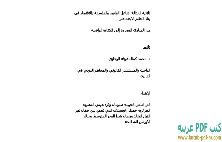 تحميل كتاب ثلاثية العدالة PDF – محمد كمال الرخاوي – في كتاب "ثلاثية العدالة: تفاعل القانون والفلسفة والاقتصاد في بناء النظام الاجتماعي"، يتناول الدكتور محمد كمال الرخاوي علاقة ثلاثة عناصر أساسية تشكل بنية النظام الاجتماعي: القانون، الفلسفة، والاقتصاد. يسعى المؤلف إلى استكشاف كيفية تفاعل هذه العناصر بشكل يعزز العدالة ويؤثر في تنظيم المجتمع. يقدم الرخاوي رؤية متكاملة تجمع بين الأفكار المجردة والتطبيقات الواقعية، مما يتيح للقارئ فهمًا أعمق لتحديات العدالة في السياقات المختلفة.
