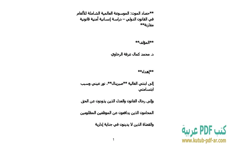 تحميل كتاب حصاد الموت PDF – محمد كمال الرخاوي – "حصاد الموت: الموسوعة العالمية الشاملة للألغام في القانون الدولي" هو عمل متميز للدكتور محمد كمال الرخاوي، يتناول موضوع الألغام بشكل شامل من وجهة نظر إنسانية وأمنية وقانونية. يقدم الكتاب دراسة مفصلة حول تأثير الألغام على المجتمعات، خاصة في المناطق التي تعاني من النزاعات المسلحة. يعرض المؤلف إحصاءات دقيقة وحالات حقيقية تسلط الضوء على الآثار المدمرة للألغام على الأفراد والعائلات، مما يجعل القارئ يدرك حجم المأساة التي تعيشها تلك المجتمعات.