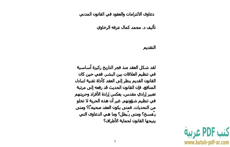 تحميل كتاب دعاوى الالتزامات والعقود في القانون المدني PDF – محمد كمال الرخاوي – يقدم كتاب "دعاوى الالتزامات والعقود في القانون المدني" للدكتور محمد كمال الرخاوي مقاربة شاملة لمفهوم الدعاوى المتعلقة بالالتزامات والعقود في إطار القانون المدني. يهدف الكتاب إلى توضيح الأسس القانونية والنظرية التي تحكم هذه الدعاوى، مما يسهم في فهم عميق لمختلف الجوانب المرتبطة بها. يتناول المؤلف من خلال نصوصه القانونية وتفسيراته مجموعة متنوعة من الموضوعات، بما في ذلك شروط صحة العقود وأنواعها، مما يوفر للقارئ إطارًا قانونيًا متماسكًا.