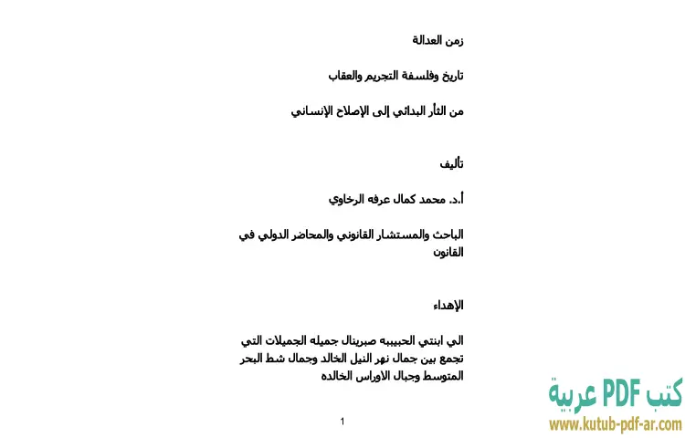 تحميل كتاب زمن العدالة PDF – محمد كمال الرخاوي – يقدم دكتور محمد كمال الرخاوي في كتابه "زمن العدالة: تاريخ وفلسفة التجريم والعقاب" دراسة شاملة تستعرض تطور مفهوم العدالة عبر العصور، مشيرًا إلى التحولات التي شهدتها المجتمعات في نظرتها إلى الجريمة والعقوبة. يتناول الكتاب الفلسفات المختلفة التي تعرضت لفكرة العقاب، بدءًا من الممارسات البدائية التي كانت تعتمد على الثأر، وصولًا إلى الأنظمة القانونية الحديثة التي تسعى لتحقيق الإصلاح والعدالة الاجتماعية.