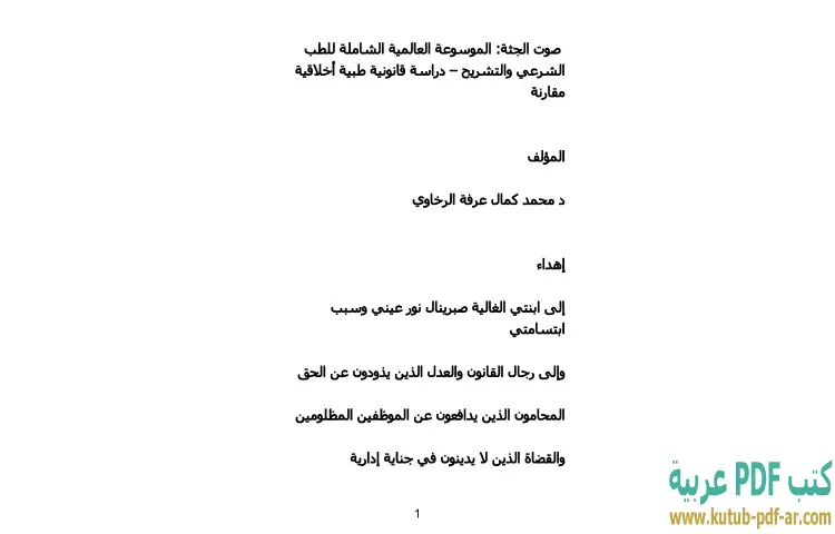 تحميل كتاب صوت الجثة PDF – محمد كمال الرخاوي – "صوت الجثة: الموسوعة العالمية الشاملة للطب الشرعي والتشريح" هو عمل متكامل يجمع بين القانون والطب والعلوم الأخلاقية، حيث يقدم الدكتور محمد كمال الرخاوي دراسة شاملة تعكس تداخل هذه المجالات في فهم الظواهر الجنائية. يتناول الكتاب مختلف جوانب الطب الشرعي، بدءًا من الأسس العلمية للتشريح، وصولاً إلى التطبيقات القانونية التي تستند إلى النتائج المستخلصة من الفحوصات. يسعى الرخاوي من خلال هذا العمل إلى تقديم رؤى دقيقة حول كيفية استخدام العلم لخدمة العدالة.