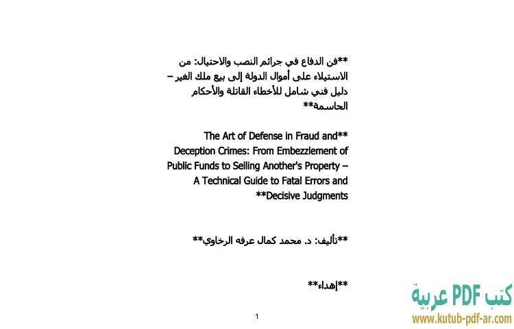 تحميل كتاب فن الدفاع في جرائم النصب والاحتيال PDF – محمد كمال الرخاوي – يستعرض كتاب "فن الدفاع في جرائم النصب والاحتيال" للدكتور محمد كمال الرخاوي موضوعًا حيويًا ومعقدًا يتعلق بالجرائم المالية وكيفية الدفاع عنها في سياقات قانونية مختلفة. يتناول الكتاب أنواع الجرائم المرتبطة بالنصب والاحتيال، بدءًا من الاستيلاء على أموال الدولة وصولًا إلى بيع ملك الغير، مما يمنح القارئ فكرة شاملة عن كيفية معالجة هذه القضايا القانونية.