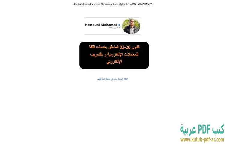 تحميل كتاب قانون 26-02 المتعلق بخدمات الثقة للمعاملات الإلكترونية وبالتعريف الإلكتروني PDF – حسوني محمد عبدالغني