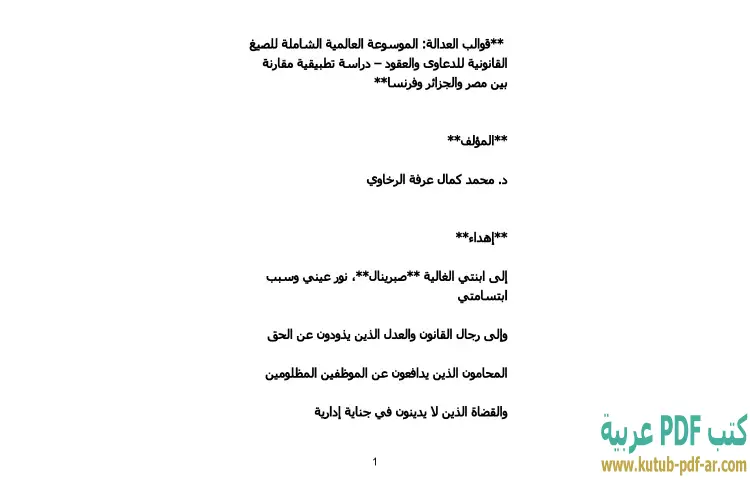 تحميل كتاب قوالب العدالة PDF – محمد كمال الرخاوي – قوالب العدالة هو كتاب يقدمه الدكتور محمد كمال الرخاوي، حيث يتناول فيه الصيغ القانونية للدعاوى والعقود بشكل شامل. يتميز الكتاب بتقديم دراسة تطبيقية مقارنة بين ثلاثة بلدان هي مصر والجزائر وفرنسا، مما يتيح للقارئ فهم الفروق والسمات القانونية المميزة لكل من هذه الأنظمة.