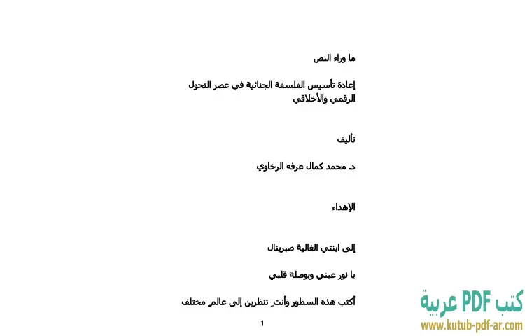 تحميل كتاب ما وراء النص PDF – محمد كمال الرخاوي – "ما وراء النص: إعادة تأسيس الفلسفة الجنائية في عصر التحول الرقمي والأخلاقي" هو كتاب يقدمه الدكتور محمد كمال الرخاوي، يتناول فيه قضايا فلسفية معاصرة تتعلق بالجنائيات في ظل التطورات الرقمية والأخلاقية التي يشهدها العالم اليوم. يسعى المؤلف إلى إعادة النظر في المفاهيم التقليدية للجنائية، مستندًا إلى التحولات التي طرأت على المجتمع بفعل التقنية الحديثة وتأثيراتها على السلوك البشري والقيم الأخلاقية.