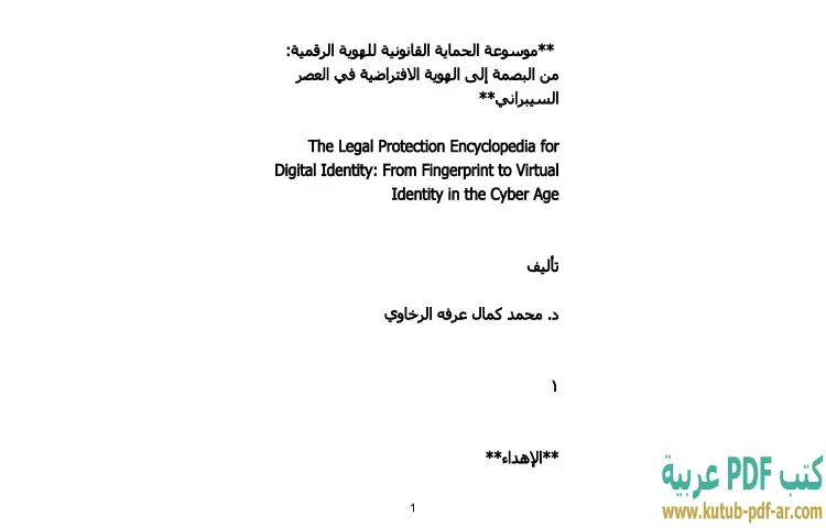 تحميل كتاب موسوعة الحماية القانونية للهوية الرقمية PDF – محمد كمال الرخاوي – يتناول كتاب "موسوعة الحماية القانونية للهوية الرقمية: من البصمة إلى الهوية الافتراضية في العصر السيبراني" تأصيل مفهوم الهوية الرقمية وأبعادها القانونية في ظل التطورات التكنولوجية المتسارعة. يستعرض الدكتور محمد كمال الرخاوي في هذا الكتاب التحديات التي تواجه الأفراد والمؤسسات في حماية هوياتهم الرقمية، مسلطًا الضوء على أهمية البصمة الرقمية والآثار القانونية المترتبة على استخدامها.