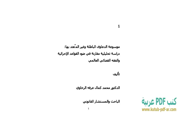 تحميل كتاب موسوعة الدعاوى الباطلة وغير المعتد بها PDF – محمد كمال الرخاوي – موسوعة الدعاوى الباطلة وغير المُعتد بها للدكتور محمد كمال الرخاوي تقدم دراسة تحليلية مقارنة تتناول القواعد الإجرائية والفقه القضائي العالمي في هذا المجال. يساهم الكتاب في توضيح مفهوم الدعاوى الباطلة وأسباب عدم الاعتداد بها، مما يوفر للقارئ فهماً عميقاً حول كيفية تعامل الأنظمة القضائية مع هذه الدعاوى وتأثيرها على سير العدالة.