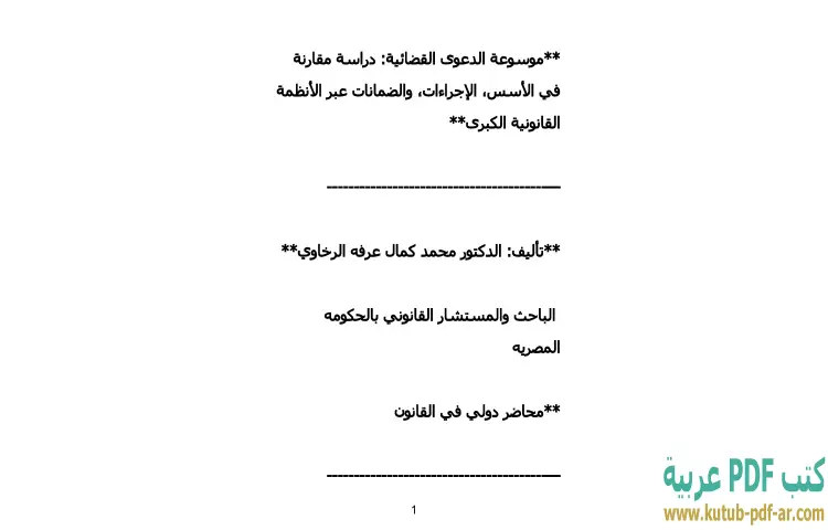 تحميل كتاب موسوعة الدعوى القضائية PDF – محمد كمال الرخاوي – تتناول "موسوعة الدعوى القضائية" للدكتور محمد كمال الرخاوي موضوعًا حيويًا في عالم القانون، حيث تقدم دراسة مقارنة في الأسس والإجراءات والضمانات المتبعة عبر الأنظمة القانونية الكبرى. يسعى الكاتب من خلال هذه الموسوعة إلى توضيح المفاهيم القانونية المتعلقة بالدعوى القضائية من خلال تحليل شامل للأطر القانونية المختلفة، مما يوفر للقارئ فهماً عميقاً حول كيفية عمل النظام القضائي.